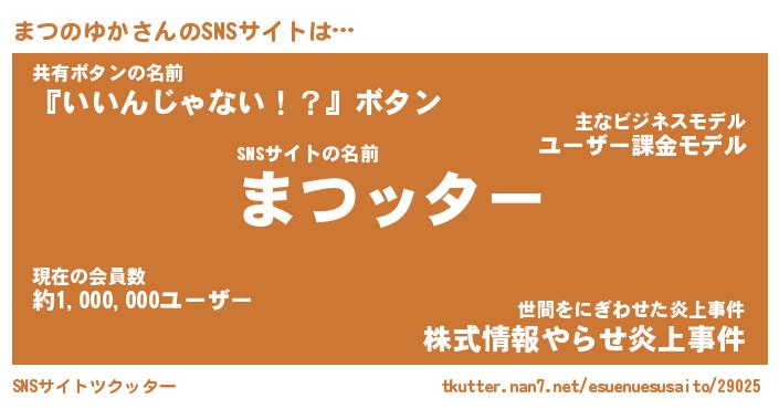 | 胡散臭い通販商品みたいなあだ名 | 『億万長者になれるブレスレット…その名も「まつのゆか」』 |