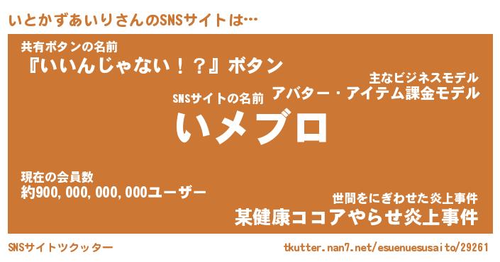 | ツイッター | いとかずあいりさんのツイッターID『katatsumuri_idle』 |