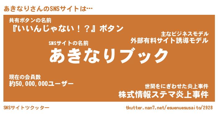 | 胡散臭い通販商品みたいなあだ名 | 『億万長者になれる霊験あらたかなお札…その名も「あきなり」』 |
