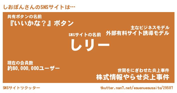 | ファンタジー風あだ名 | 『シオフェル』『エターナルシオポンー』 |