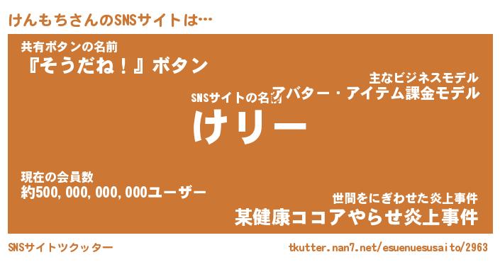 | ポケモン風あだ名 | 『ケンチュウ』『ケンモダネ』 |