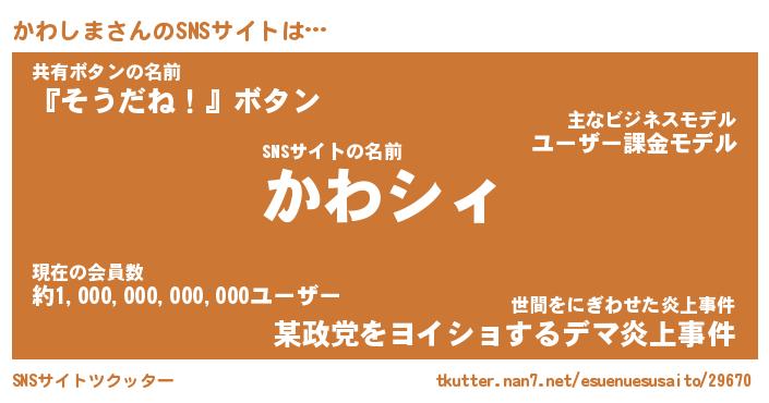 | 胡散臭い通販商品みたいなあだ名 | 『必ず成功する霊験あらたかなお札…その名も「かわしま」』 |