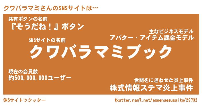 | 欧米人風あだ名 | 『マイケルクワバラマミ』 |