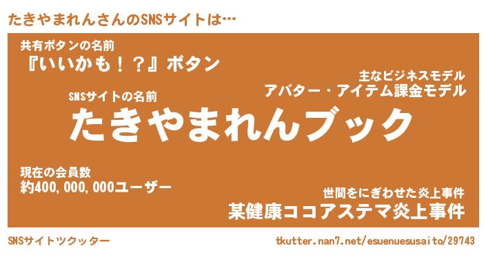| 胡散臭い通販商品みたいなあだ名 | 『億万長者になれるブレスレット…その名も「たきやまれん」』 |