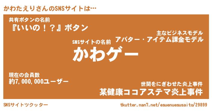 | ファンタジー風あだ名 | 『カワフェル』『エターナルカワタエリー』 |