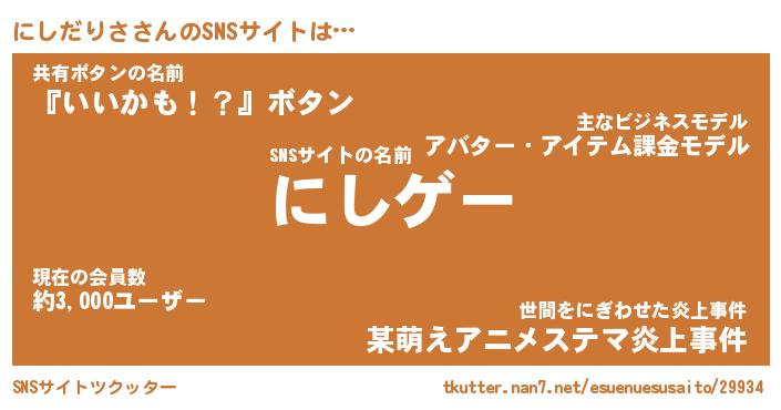 | ポケモン風あだ名 | 『ニシチュウ』『ニシダダネ』 |