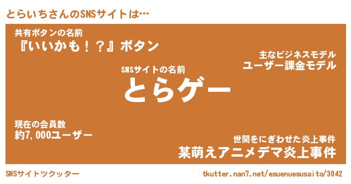 | 意味不明あだ名 | 『ペロリンとらいち』『永久保存とらいち』 |