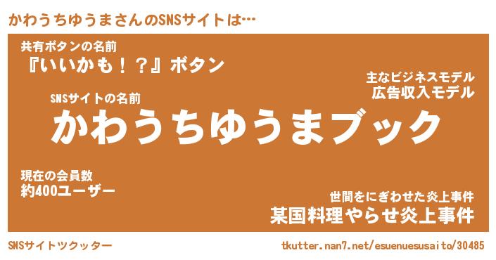 | 伝説のあだ名 | 『封印されし傭兵かわうちゆうま』 |
