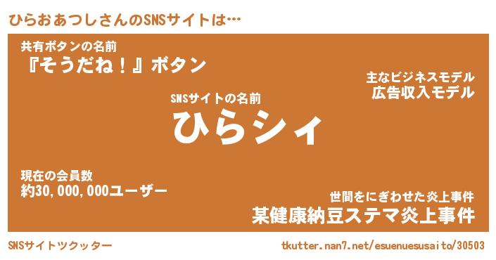 | 胡散臭い通販商品みたいなあだ名 | 『必ず成功するブレスレット…その名も「ひらおあつし」』 |