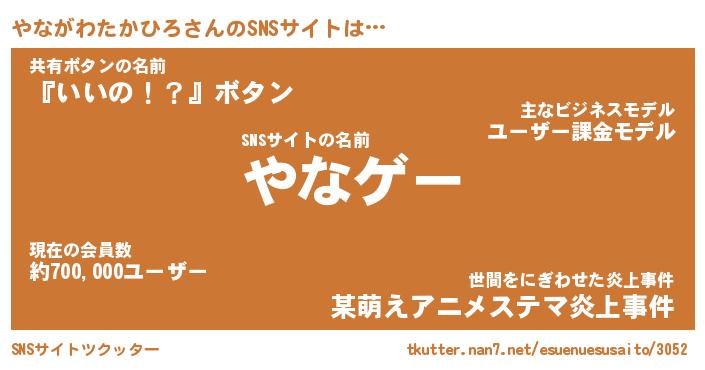 | 肩書あだ名 | 『やながわたかひろ社長』 |