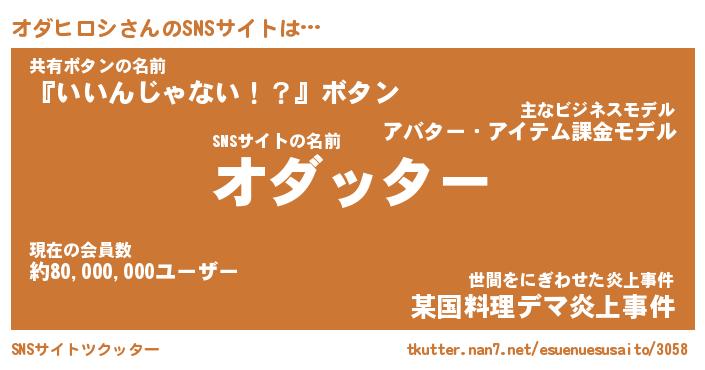 | ファンタジー風あだ名 | 『オダフェル』『エターナルオダヒロシー』 |