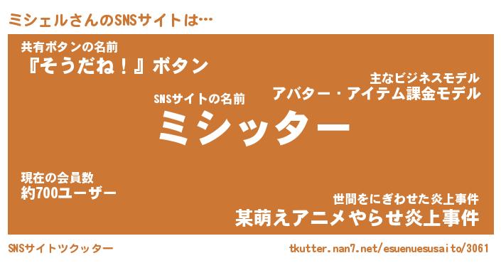 | ポケモン風あだ名 | 『ミシチュウ』『ミシェダネ』 |