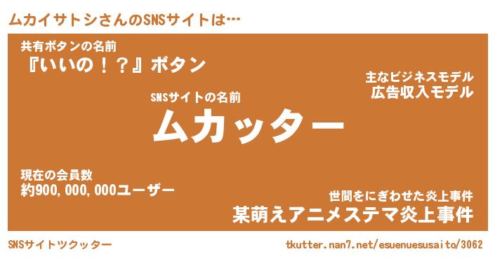 | 肩書あだ名 | 『ムカイサトシCEO』『ムカイサトシ団長』 |