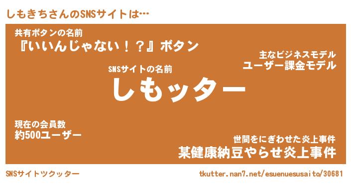 | 男性向けラノベタイトル風あだ名 | 『シモキチアートオンライン』 |