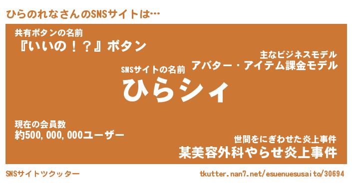 | ヒーロー風カッコイイあだ名 | 『スーパーヒラノレナ』『炎刃騎士ヒラ』 |
