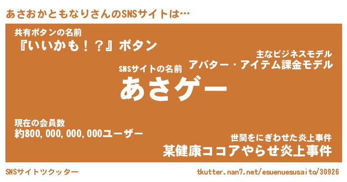 | 肩書あだ名 | 『あさおかともなりCEO』 |