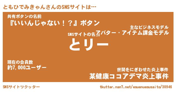 | ヘコむあだ名 | 『ともにー』『なまこ酢』『ともを』 |