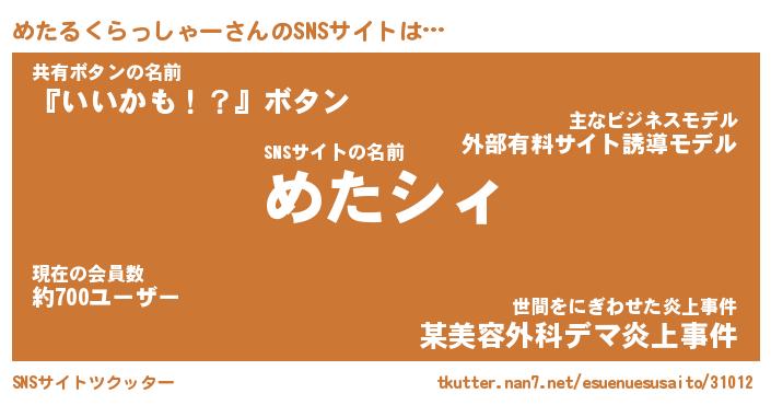 | 胡散臭い通販商品みたいなあだ名 | 『必ず成功する霊験あらたかなお札…その名も「めたるくらっしゃー」』 |