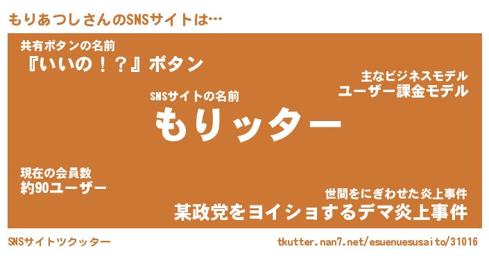 | 肩書あだ名 | 『もりあつし店長』『もりあつし大統領』 |