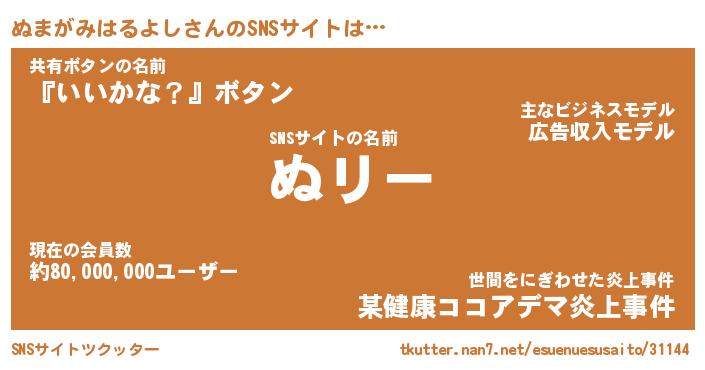 | 肩書あだ名 | 『ぬまがみはるよし御曹司』 |