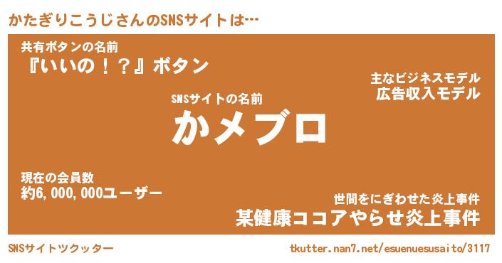 | 肩書あだ名 | 『かたぎりこうじ社長』 |