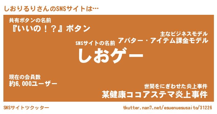 | 胡散臭い通販商品みたいなあだ名 | 『必ず成功する霊験あらたかなお札…その名も「しおりるり」』 |