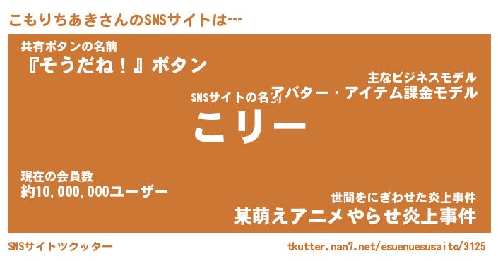 | 伝説のあだ名 | 『不死鳥の傭兵こもりちあき』 |