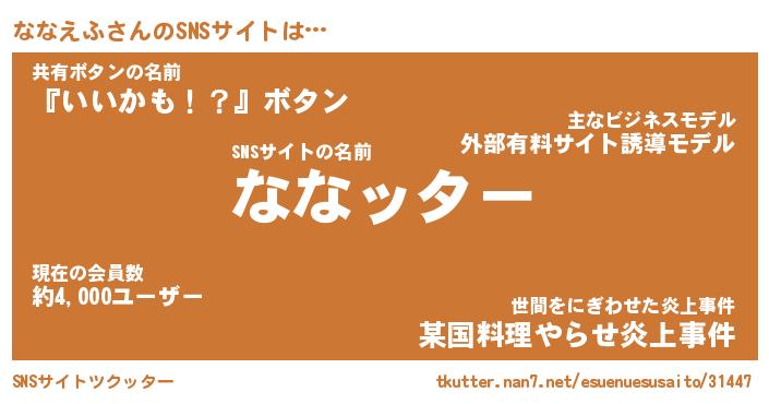| 胡散臭い通販商品みたいなあだ名 | 『億万長者になれる霊験あらたかなお札…その名も「ななえふ」』 |