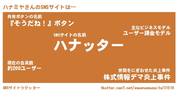| 胡散臭い通販商品みたいなあだ名 | 『億万長者になれるブレスレット…その名も「ハナミヤ」』 |