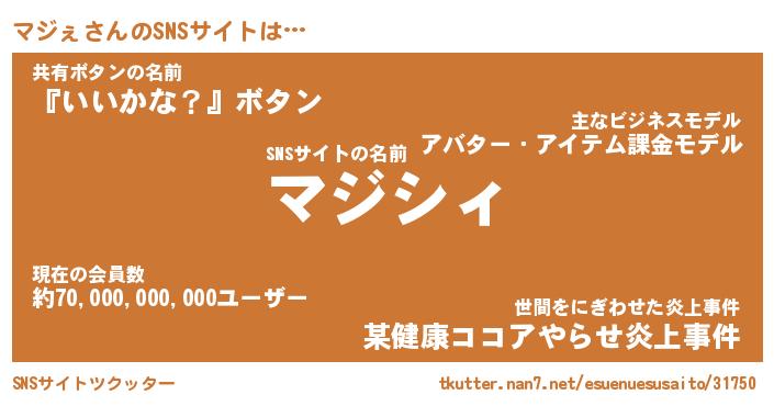 | ヘコむあだ名 | 『マジにー』『豆乳』『マジ太郎』 |