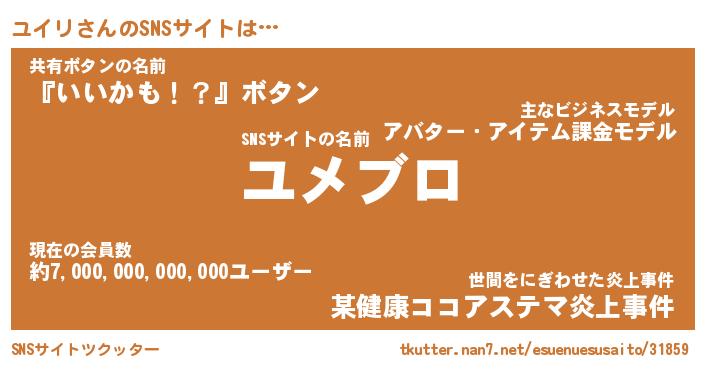 | ヘコむあだ名 | 『ユイにー』『なまこ酢』『ユイを』 |