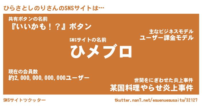 | 胡散臭い通販商品みたいなあだ名 | 『モテモテ間違いなし水晶球…その名も「ひらさとしのり」』 |