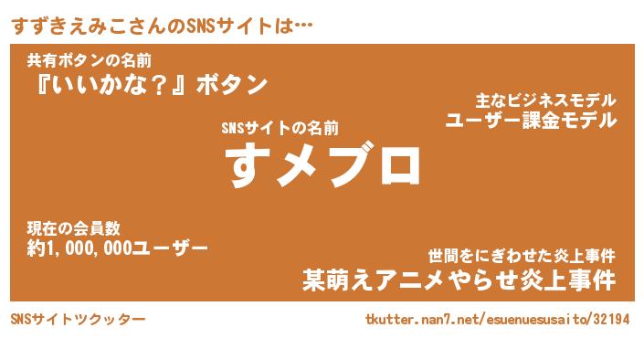 | 男性向けラノベタイトル風あだ名 | 『スズキエミコアートオンライン』 |