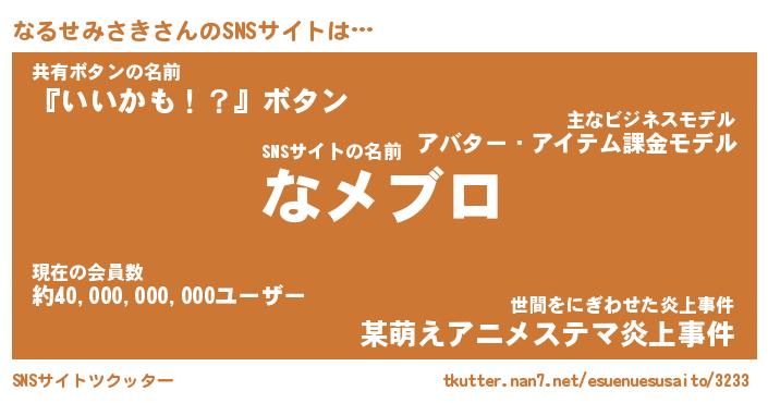 | 料理風あだ名 | 『節約★なるせみさきと油揚げの玉子丼』 |