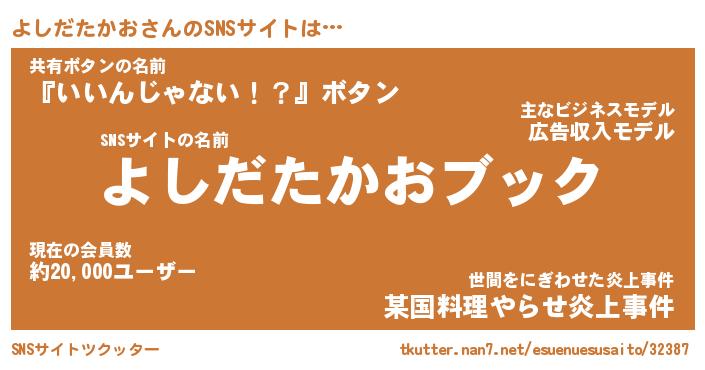 | ヒーロー風カッコイイあだ名 | 『スーパーヨシダタカオ』『炎刃騎士ヨシ』 |