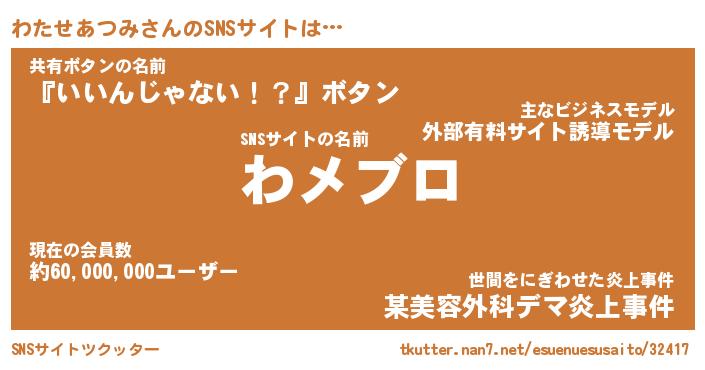 | 肩書あだ名 | 『わたせあつみ社長』『わたせあつみ担任』 |