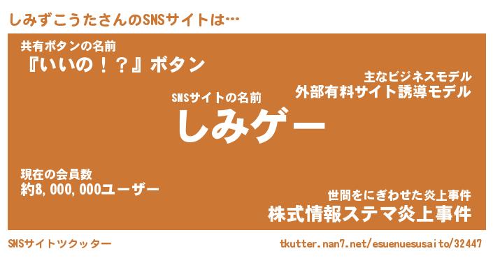 | 肩書あだ名 | 『しみずこうた社長』『しみずこうた団長』 |