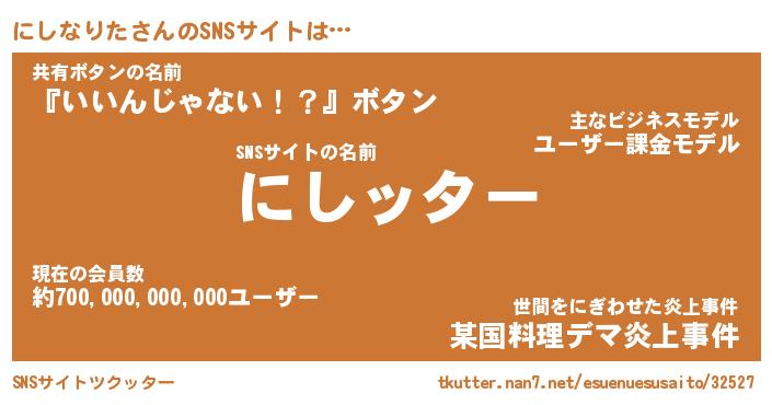 | 肩書あだ名 | 『にしなりた社長』『にしなりた国家主席』 |