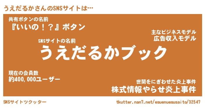 | 肩書あだ名 | 『うえだるか御曹司』『うえだるか大統領』 |