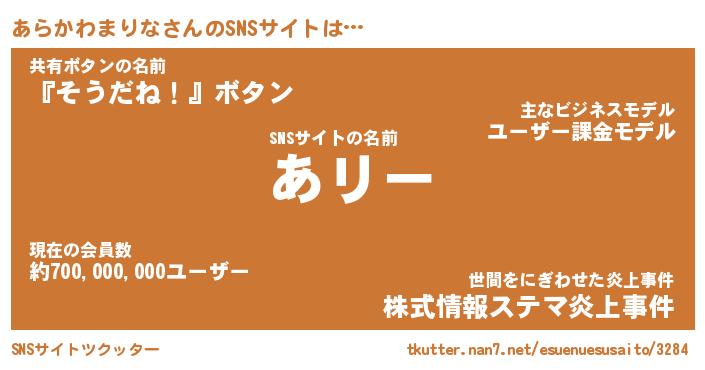 | 胡散臭い通販商品みたいなあだ名 | 『モテモテ間違いなし水晶球…その名も「あらかわまりな」』 |