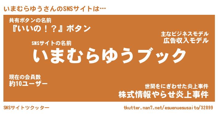 | 肩書あだ名 | 『いまむらゆうCEO』『いまむらゆう班長』 |