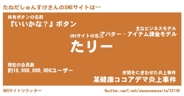 | 男性向けラノベタイトル風あだ名 | 『たねだしゅんすけの憂鬱』 |