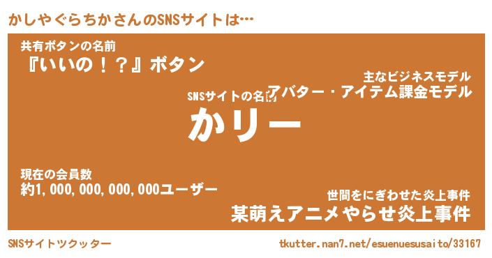 | 肩書あだ名 | 『かしやぐらちか店長』 |