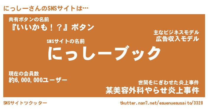 | 意味不明あだ名 | 『ペロリンにっしー』『永久保存にっしー』 |