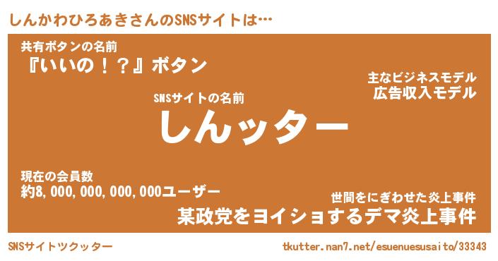 | 女子向けラノベタイトル風あだ名 | 『誰かこのしんかわひろあきを説明してください! ~契約から始まるウェディング~』 |