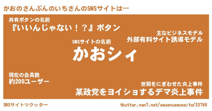 | 男性向けラノベタイトル風あだ名 | 『かおのさんぶんのいちの憂鬱』 |