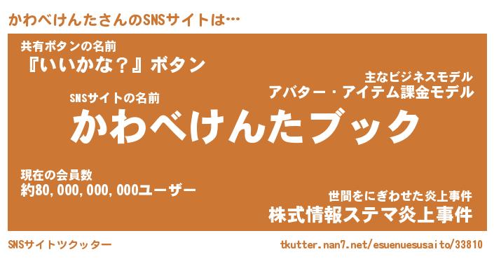 | 肩書あだ名 | 『かわべけんた社長』『かわべけんた塾長』 |
