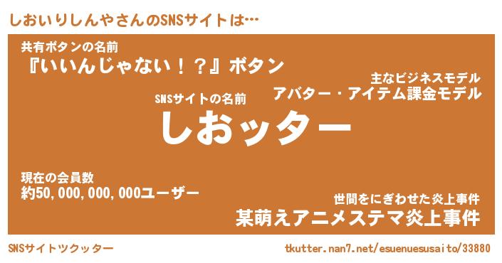 | 胡散臭い通販商品みたいなあだ名 | 『億万長者になれる水晶球…その名も「しおいりしんや」』 |