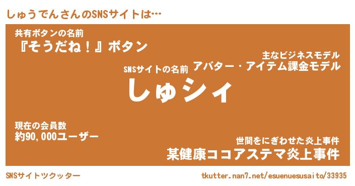 | ヘコむあだ名 | 『しゅふぇ~』『酢こんぶ』『しゅを』 |