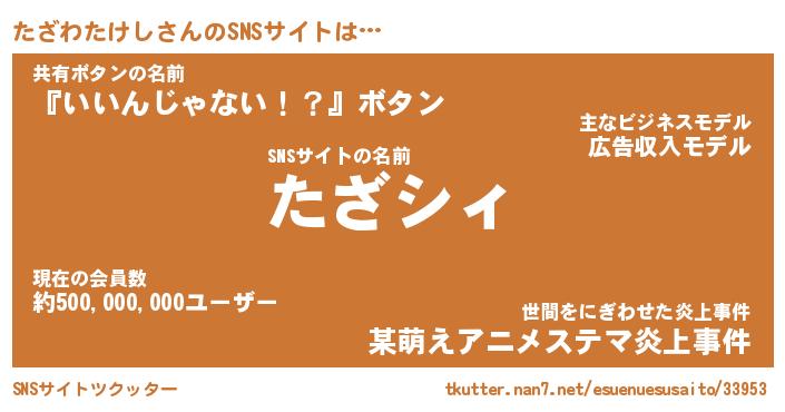 | ツイッター | たざわたけしさんのツイッターID『konnyaku_man』 |